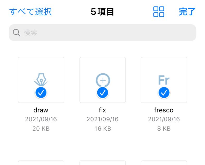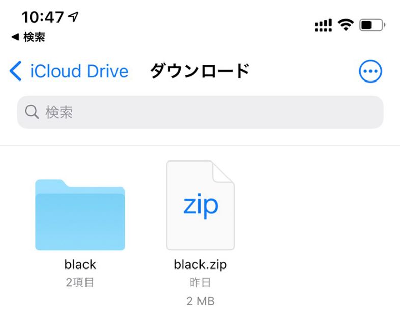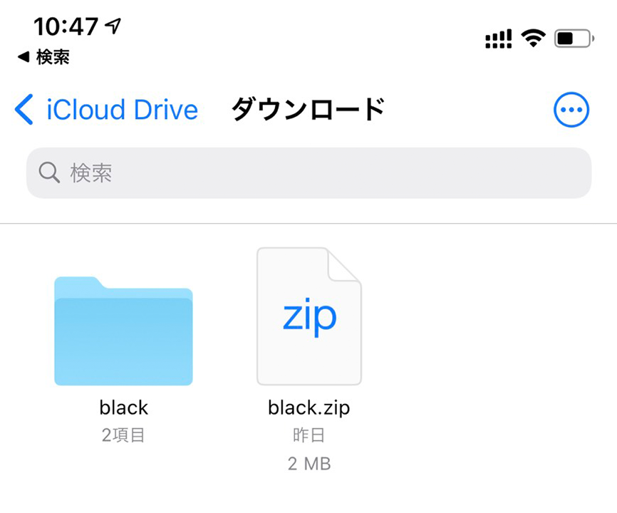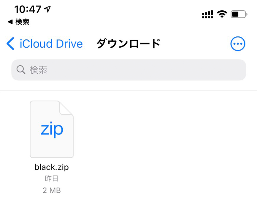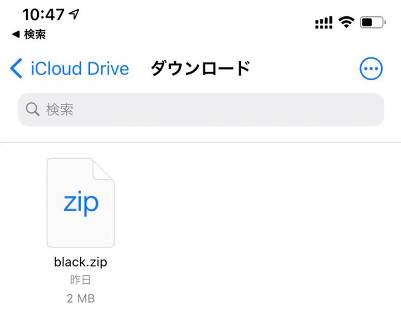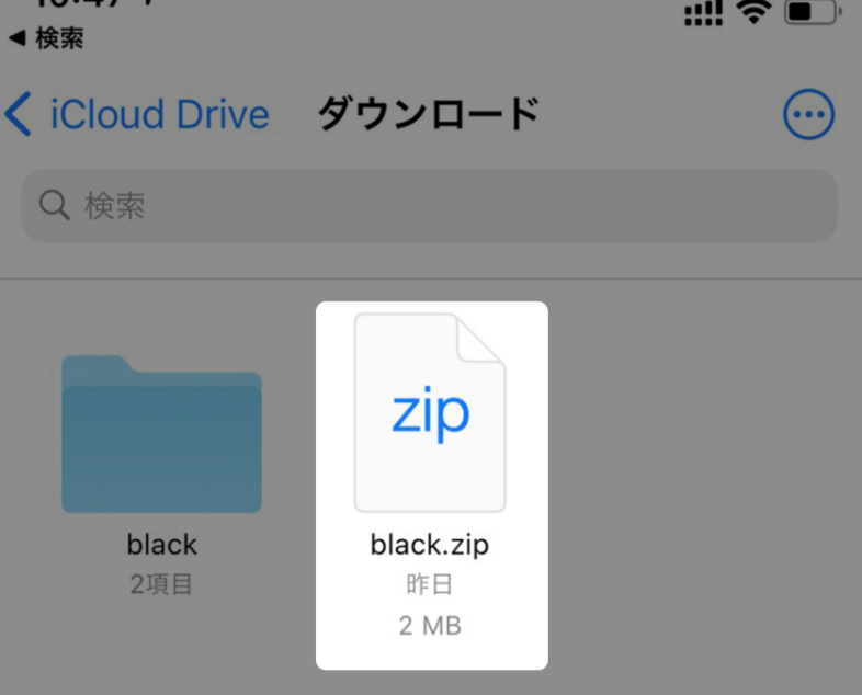 ファイルアプリが起動したら、zipファイルのアイコンをタップします。
