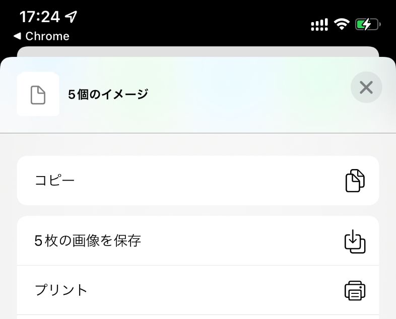 選択が完了したら、画面右下のアイコンを選択し、「○枚の画像を保存」をタップし、画像をカメラロールに保存します。