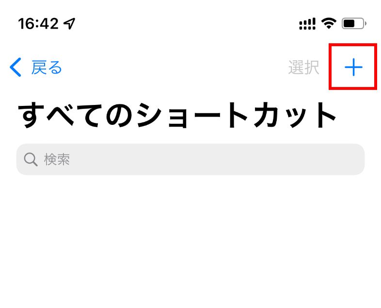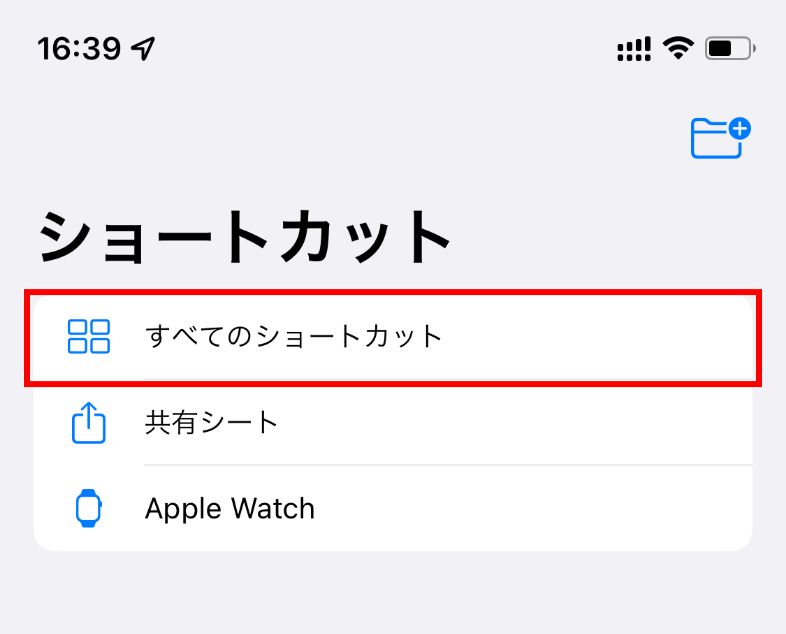 ショートカットアプリを起動し「すべてのショートカット」をタップ