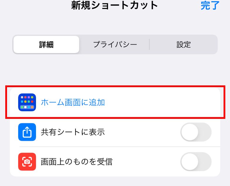 最後に画面右上の「追加」をタップし、アイコンを任意の位置に移動させて完成です。