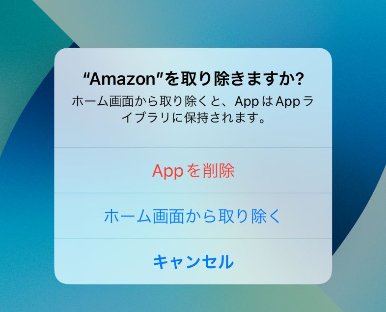 元のアイコンの左上「ー」ボタンをタップして、「ホーム画面から取り除く」をタップします。